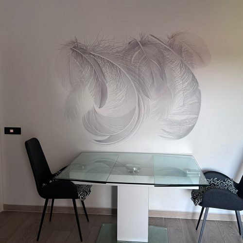 Utilizziamo stampanti avanzate e inchiostri di alta qualità per trasferire il design desiderato direttamente sulla superficie della parete. Il processo è preciso, resistente e personalizzabile.